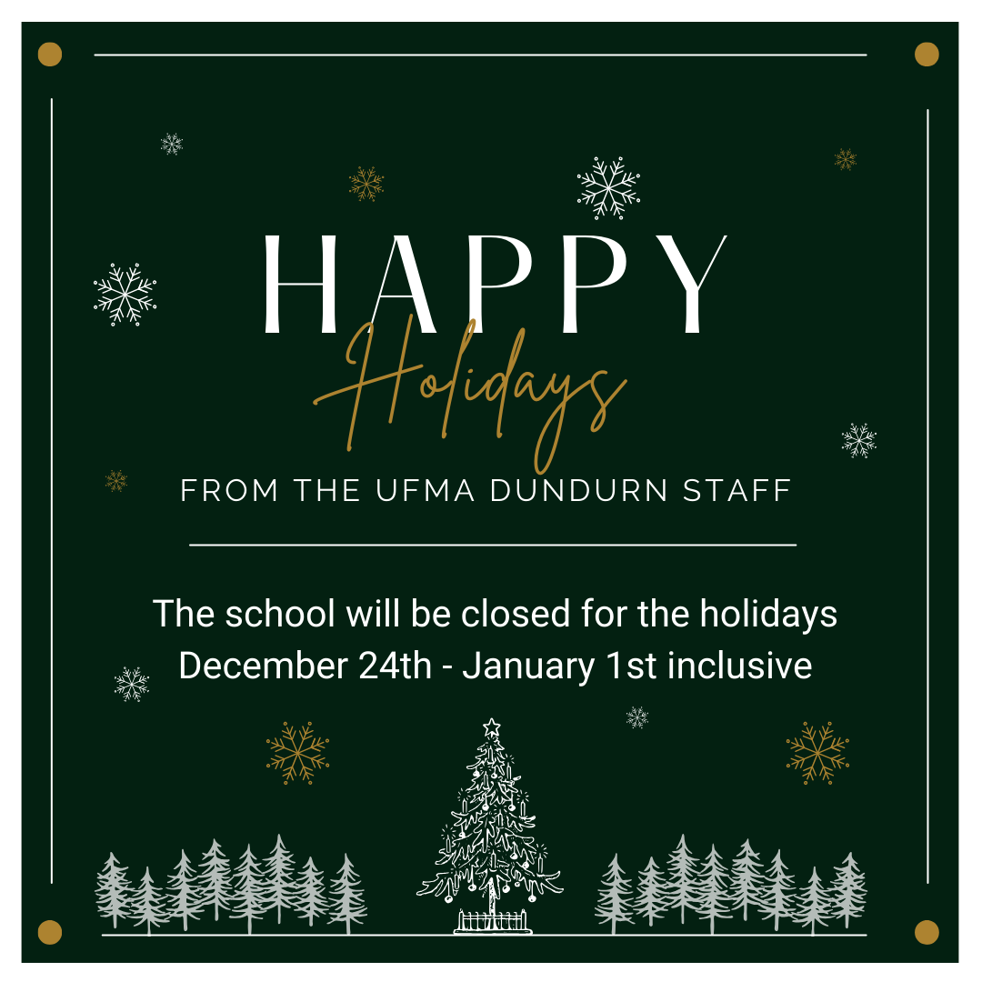 The karate school will be closed over the holidays from December 24th – January 1st inclusive. Classes will resume on Tuesday January 2nd with the new winter schedule. The staff at UFMA Dundurn wish you all a very Merry Christmas, happy holidays and all the best for 2024.
