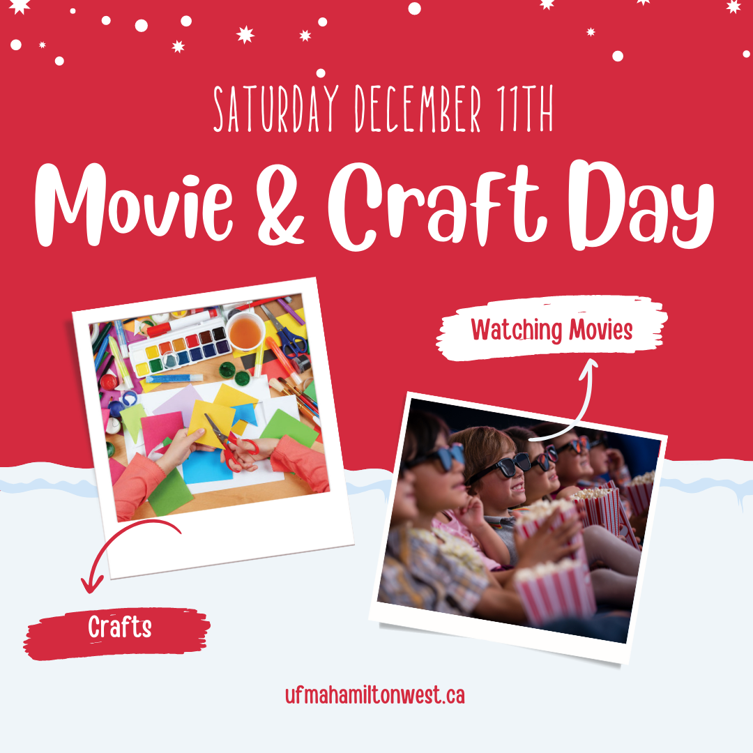 Saturday December 11th from 2-5 pm, we are hosting a craft & movie event. Parents- do you need a few hours free from children to finish your shopping or just relax? We’ve got you covered. $15 +HST for 3 hours of Christmas crafts and a movie. Sign up at the front desk today.